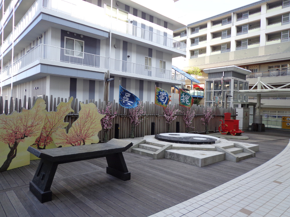 公式の真面目な撮影のつもりが強風のために時々パンチラ写真となってた…ような気がするいまもえ娘達(外部からの撮影は禁止されたが三国志ガーデンでこっそり公式写真を撮っていたということは載せてもよいとのこと)とお別れして商店街にもどったら